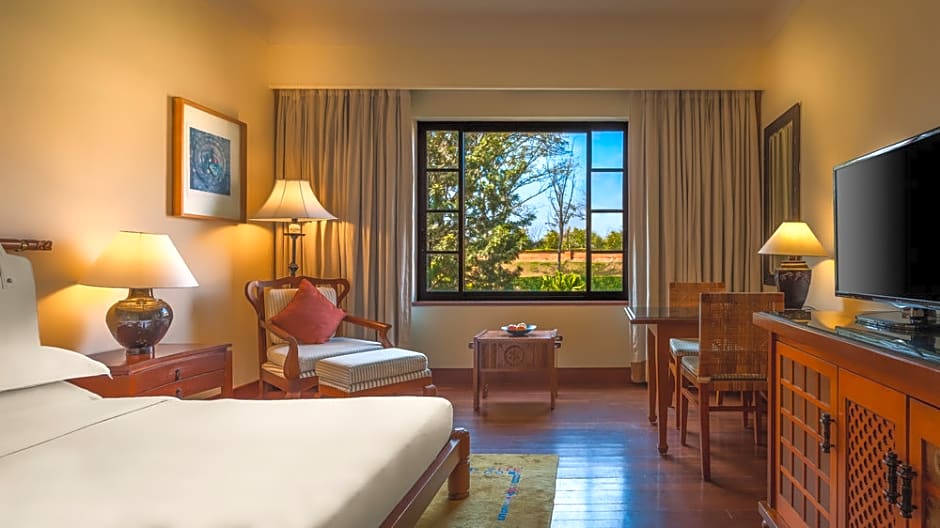 Located in the Taragaon Boudha area near the Pasang Lhamu Statue, the hotel offers views of the surrounding mountains and iconic landmarks. An outdoor pool, along with a terrace and garden, provides welcoming spots to unwind after a day of exploring Kathmandu. These spaces set the tone for a stylish base that pairs comfort with a touch of Nepalese charm.